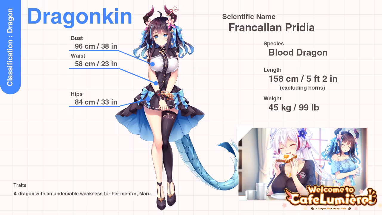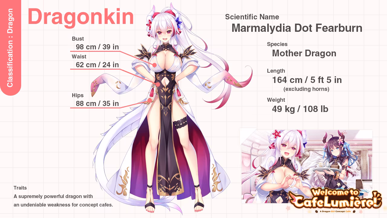 This is the story about a guy and a (dragon) girl and their love for concept cafes. A cute, romantic comedy visual novel by new Japanese brand, Cutephoria!